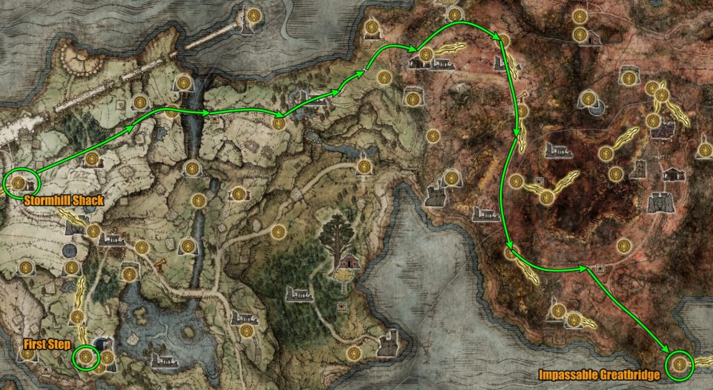 1. From the starting area (The First Step site of grace), head east and descend the cliff.